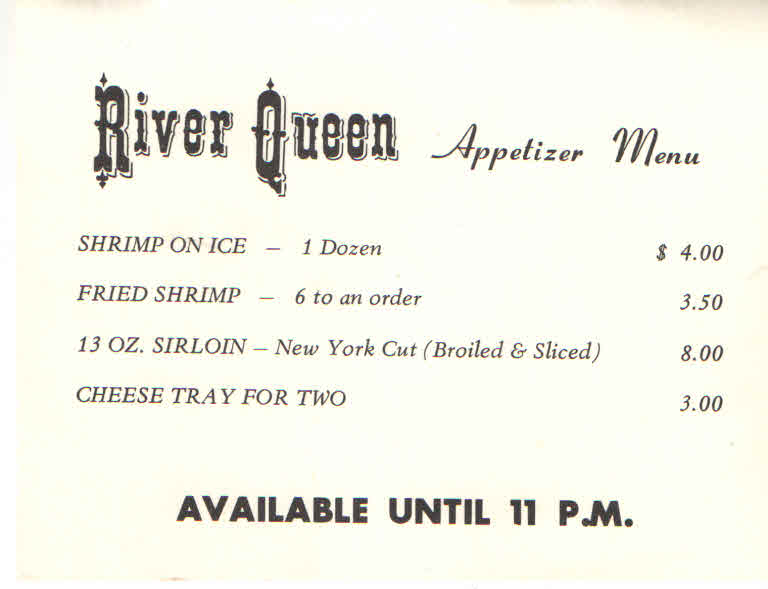 It’s so like my father to note where they were—the 41st floor of the Marriott Hotel in a lounge called “Top of the Mart.” It looks like Mom and Dad visited when this place was still hip and happenin’—decades before Katrina decimated it. I’m so glad Dad memorialized the view. So like him not only to note the date and time, but also that it was dusk and “overlooking the Mississippi River.” The Huey Long Bridge looks prettier in this sketch than it ever has in reality. He romanticized it a bit, as he did most things. And it’s soooo like him to draw on whatever he had handy—this time, a table card from a riverboat they’d probably been on earlier in the day. Look at those 1970s prices.
